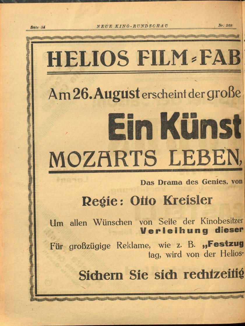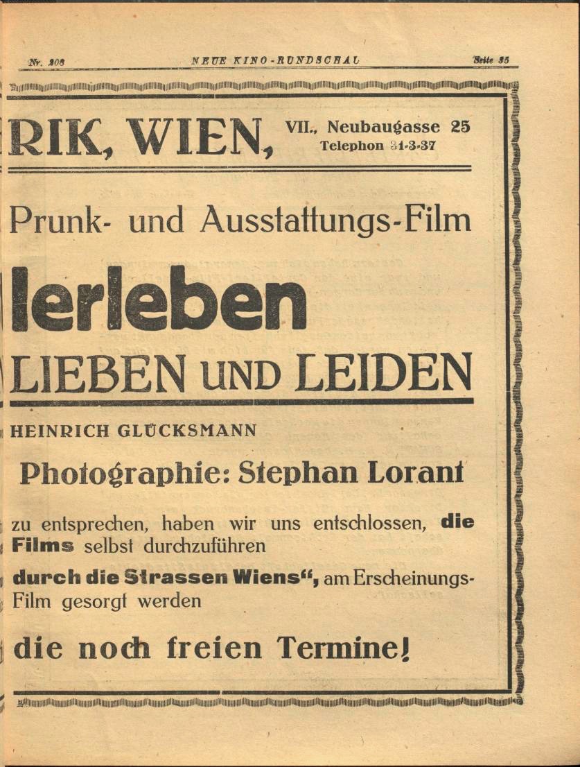 Glücksmann wrote the screenplay for the highly promoted feature film Mozarts Leben, Lieben und Leiden (‘Mozart’s Life, Loves, and Sorrows’), which was directed by Otto Kreisler and released two years ago. However, this wasn’t his first excursus from the theatre stage to the silver screen. In 1918, he wrote the screenplay for So fallen die Lose des Lebens (‘The Fortunes of Life’), a silent film melodrama directed by Friedrich Rosenthal. Currently, he tells us that he is dedicating his time to other projects. Whatever happens, we can eagerly anticipate Glücksmann's next artistic work.